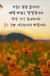 °¡À»ÀÇ ³¡ÀÚ¶ô¿¡¼ °Ü¿ïÀ» ´À³¢°Ô ÇÏ´Â Âù¹Ù¶÷À» ¸ÂÀÌÇÕ´Ï´Ù. ¾ó¸¶ ³²Áö ¾ÊÀº °¡À»À» ÈÄȸ¾øÀÌ º¸³»½Ã°í ¾÷¹«ÀÇ ¸¶¹«¸®µµ Àß ÇϽñ⠹ٶø´Ï´Ù~¢Ý